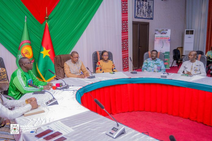 Le ministre des Affaires étrangères, SEM Karamoko Jean Marie TRAORE, accompagné du ministre délégué, Mme Bêbgnasgnan Eldine KABRE/KABORE a présidé, dans la soirée du 27 janvier 2026, une cérémonie de remise de contribution au Fonds de Soutien patriotique et à l’Agence Faso Mêbo, par deux délégations de la diaspora, d’un montant total 42 millions 719 169 francs CFA.