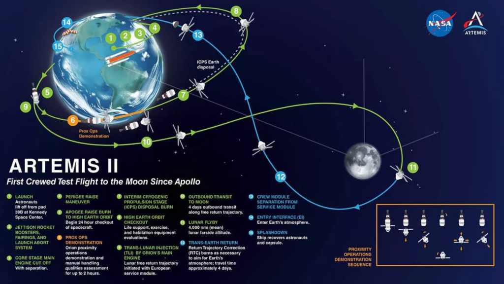 Le profil de mission suit par ailleurs une trajectoire dite de « retour libre ». Cela signifie que, même en cas de problème, la gravité de la Lune permettrait au vaisseau de revenir naturellement vers la Terre.